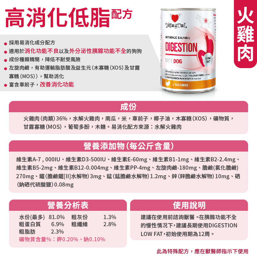 Disugual 意極鮮 處方糧 狗罐頭 高消化低脂配方 火雞 400g (DSDT010) | 意大利製造