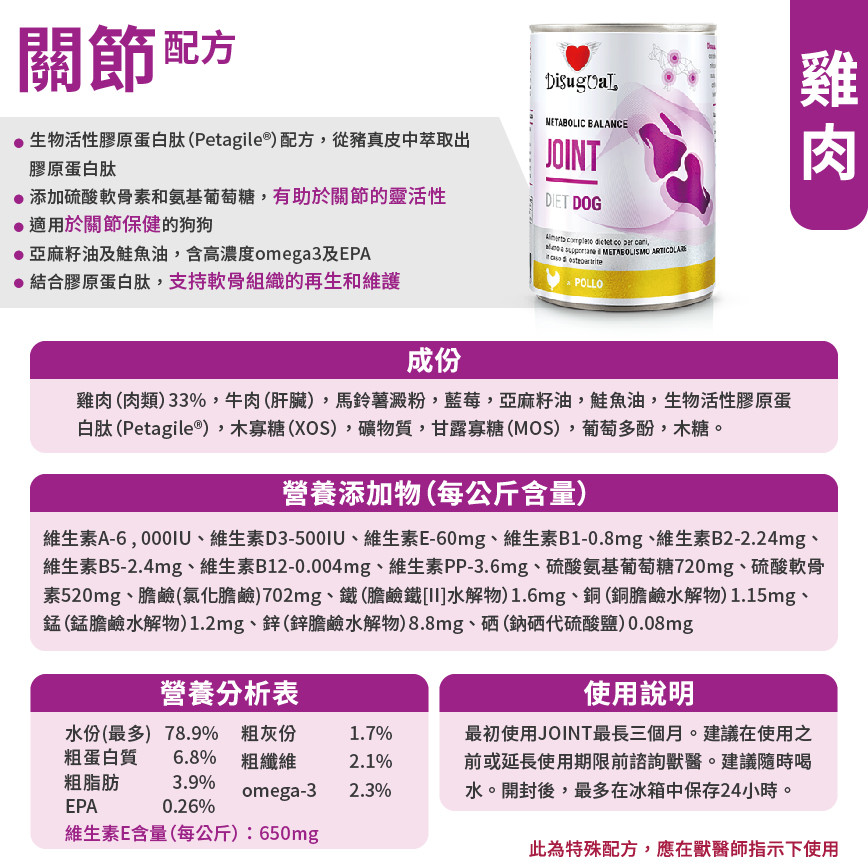 Disugual 意極鮮 處方糧 狗罐頭 關節保健配方 雞肉 400g (DSDT041) | 意大利製造