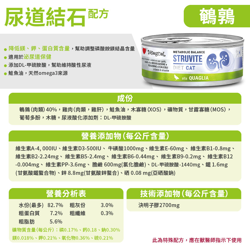 Disugual 意極鮮 處方糧 貓罐頭 防尿石配方 鵪鶉 85g (DSDTG060) | 意大利製造 - 限時優惠價