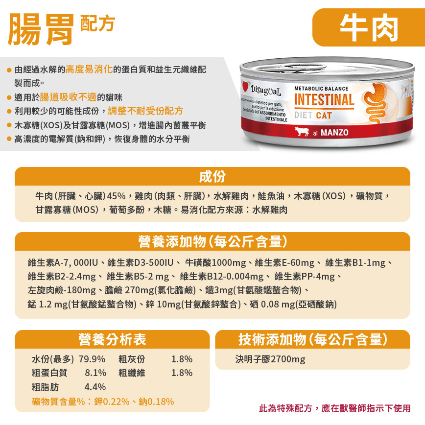 Disugual 意極鮮 處方糧 貓罐頭 腸胃配方 牛肉 85g (DSDTG031) | 意大利製造 - 限時優惠價