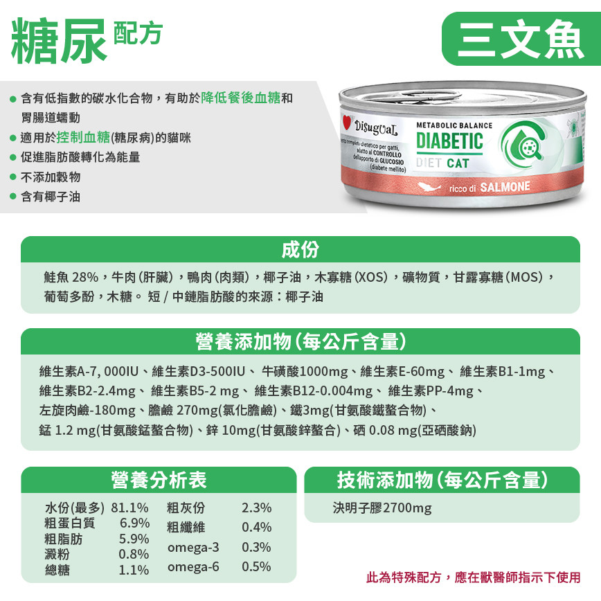 首頁 > 貓貓 > 貓罐頭 貓濕糧 > Disugual 處方糧 > Disugual 意極鮮 處方糧 貓罐頭 糖尿病配方 三文魚 85g (DSDTG082) | 意大利製造 - 限時優惠價