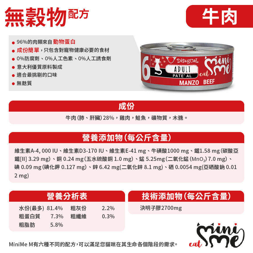 Disugual 意極鮮 貓罐頭 貓主食罐 MINI ME6 無穀物牛肉配方 85g (MIME004) | 意大利製造 - 限時試食價