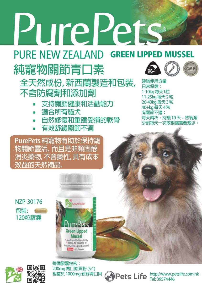 首頁 > 貓犬用 > 貓犬用保健用品 > PurePets 純寵物關節青口素 200mg 120粒 (NZP-30176)
