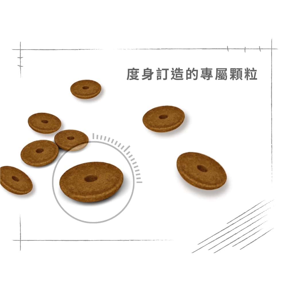 品牌深知不同品種的犬貓有不同的嘴型和咬合習慣。因此,Royal Canin法國皇家針對貓犬的品種,設計出最吻合其嘴型及生理結構的食糧顆粒形狀、大小和硬度,以利咬合及咀嚼。這種客製化的設計不僅提升了適口性,也通過咀嚼達到的物理摩擦效果,有助於維持口腔健康。