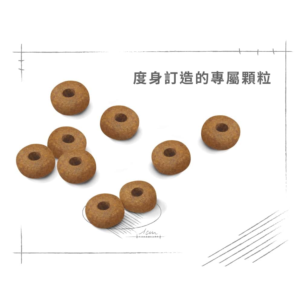 品牌深知不同品種的犬貓有不同的嘴型和咬合習慣。因此,Royal Canin法國皇家針對貓犬的品種,設計出最吻合其嘴型及生理結構的食糧顆粒形狀、大小和硬度,以利咬合及咀嚼。這種客製化的設計不僅提升了適口性,也通過咀嚼達到的物理摩擦效果,有助於維持口腔健康。