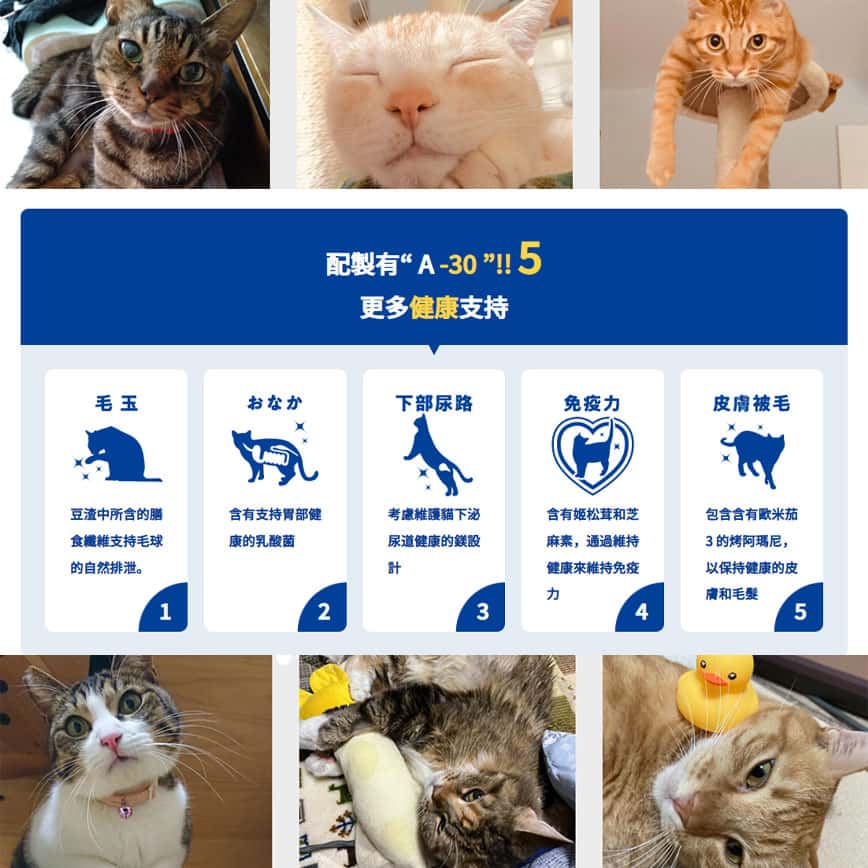 含有氨基酸“A-30”的綜合營養食品,支持貓的健康維護。