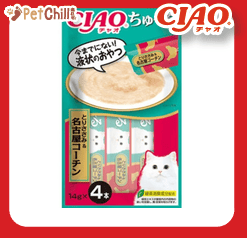 CIAO 貓零食 貓零食 CIAO 肉泥 貓零食 金槍魚及鱈場蟹肉醬 14g 4本入 (橙) (SC-108)