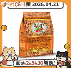 PetChill 香港No.1人氣好評貓糧狗糧寵物用品店!貓糧貓乾糧寵物用品抵至85折!至抵至齊寵物用品,貓糧,狗糧,貓砂!新會員三連送!寵物用品至抵加購換購!可能係香港最大寵物用品店 AVP愛威堡 狗糧 無穀物全犬糧 雞肉甜薯配方 25lb (JEOAVP120186325) (賞味期限 2026.04.21)