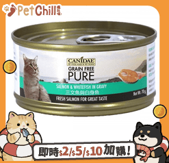 正貨保證!CANIDAE PURE 貓罐頭,三文魚及白身魚口味,70g,為全齡貓提供優質主食罐。富含天然魚肉蛋白,無穀物配方,助愛貓消化健康。立即選購,PetChill 最多最齊貓狗玩具贈品 寵物店! CANIDAE 咖比 PURE 貓罐頭 三文魚及白身魚 70g (6184)