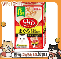 總結而言,CIAO 貓罐頭以其無與倫比的適口性、豐富的產品線和對品質的嚴格把控,成為貓咪食品市場中的佼佼者。無論是作為日常主食、美味零食,還是訓練獎勵,甚至是餵藥輔助,CIAO 產品都能完美融入貓咪的日常生活,為牠們帶來美味與健康。選擇 CIAO,就是選擇一份對貓咪的愛與關懷。現在就為您的愛貓挑選最合適的 CIAO 貓罐頭,讓牠們享受每一餐的幸福時光吧!PetChill 免費貓狗罐頭小食即送。