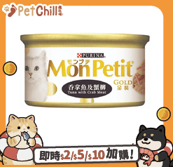 首頁 > 貓貓 > 貓罐頭 貓濕糧 > MonPetit > MonPetit 貓罐頭 金裝系列 金裝吞拿魚及蟹柳 85g (肉凍系列) (黑) (NE11638007)