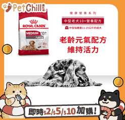 優質營養!Royal Canin 法國皇家狗糧專為中型老犬10+設計,提供專屬營養配方,支持老犬健康活力。特別添加抗氧化劑,呵護中型老犬關節與消化系統。PetChill 香港最大寵物用品網店,立即選購享至抵價格保證! Royal Canin 狗糧 法國皇家狗糧 健康營養系列 中型老犬10+營養配方 中型老犬糧 10+ 3kg