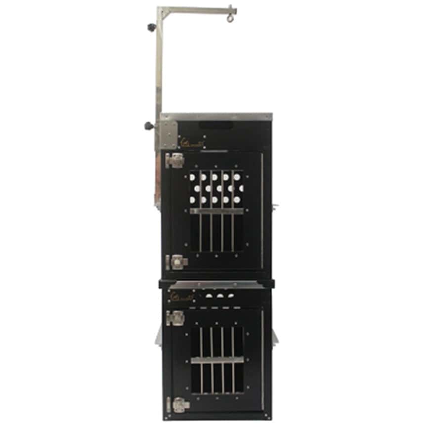 3. 兩個籠子曡加:固定鋁籠帶抽屜 + 固定鋁籠